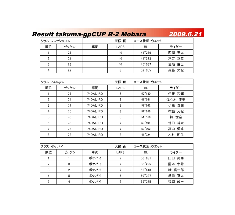 第2戦 takuma-gp CUP選手権シリーズ 茂原大会 6月21日