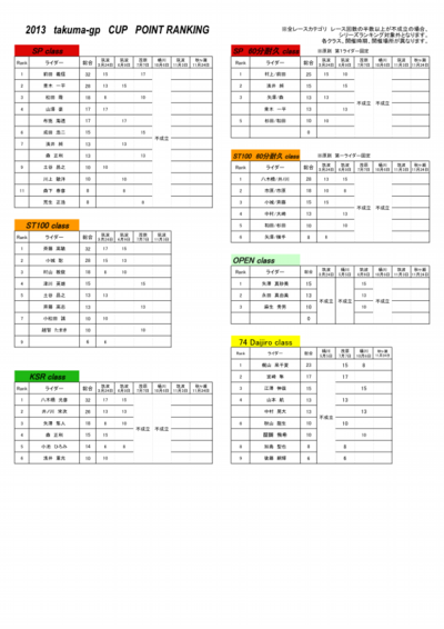 2勝、もしくは40ポイントを獲得、各サーキット基準タイムを超えた時点でST100、もしくはKSRへ自動昇格。